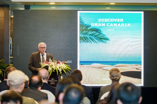 大加那利岛旅游局代表瓦伦丁・冈萨雷斯(Valentín González)重点推介了该岛多元而独特的旅游资源:从广受中国游客喜爱的“三毛之路”文化主题线路,到终年温和的“永恒之春”气候与优美海岸线,再到由火山地貌与联合国生物圈保护区构成的天然胜境,无不彰显出岛屿的多样魅力。同时,大加那利岛也是户外运动爱好者的理想目的地,拥有专业完善的冲浪、潜水、骑行与高尔夫设施;配以独具特色的加那利美食与葡萄酒文化,为游客打造全方位、沉浸式的度假体验。
