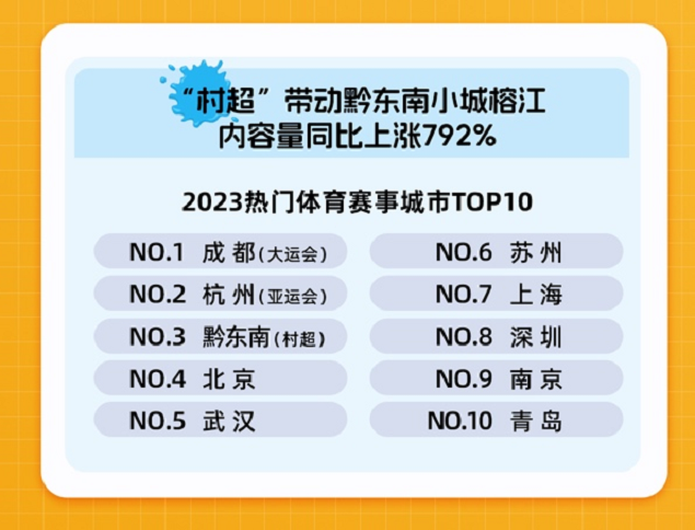 和演唱会一样带动目的地“起飞”的还有各类体育赛事。本就是热门旅游城市的成都在大运会的加持下一骑绝尘,即将举办亚运会的杭州也不遑多让,然而最引人瞩目的还要数曾经名不见经传的黔东南小城榕江。作为民间赛事却火爆全网的“村超”几乎已成为今年的现象级事件,为城市体育IP带动文旅产业发展打开了新思路,马蜂窝榕江相关内容量同比暴涨792%。