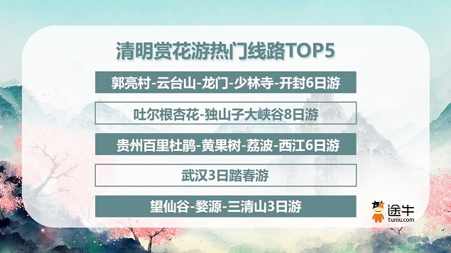 途牛《2025清明出游消费盘点》:山水徒步、文化深度游走俏,中长线赏花游需求旺