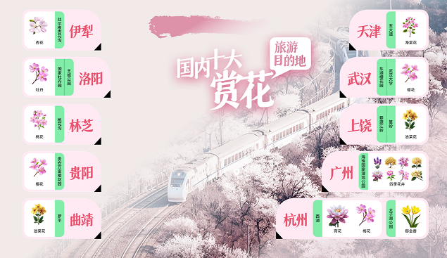 值得关注的是,比起单纯的参观打卡,参与感更强、形式更多样的赏花“新玩法”成为影响游客消费决策的重要因素。去武汉参加樱花马拉松、身穿汉服在洛阳游园赏牡丹、住进婺源油菜花海中的民宿,还有各地推出的赏花夜游、花朝节庆典、赏花专列等“赏花+”体验,正为目的地赏花市场带来全新的吸引力。