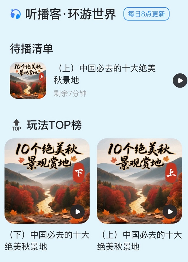 还没有敲定假期安排的游客,可以在马蜂窝“AI播客”全新上线的“十个绝美秋景观赏地”、“探秘国内五大红叶胜地”等秋季专题内容中寻找灵感。还可在平台“十一大促”中领取最高价值1010元双节补贴,选购最高立减500元的爆款当季玩乐产品,以超值价格轻松实现一场说走就走的金秋之旅。