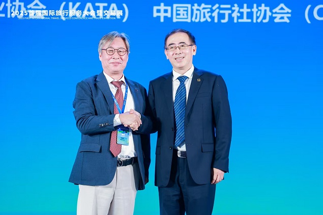 韩国旅行业协会会长李振锡(左)、中国旅行社协会会长杜宪忠(右)