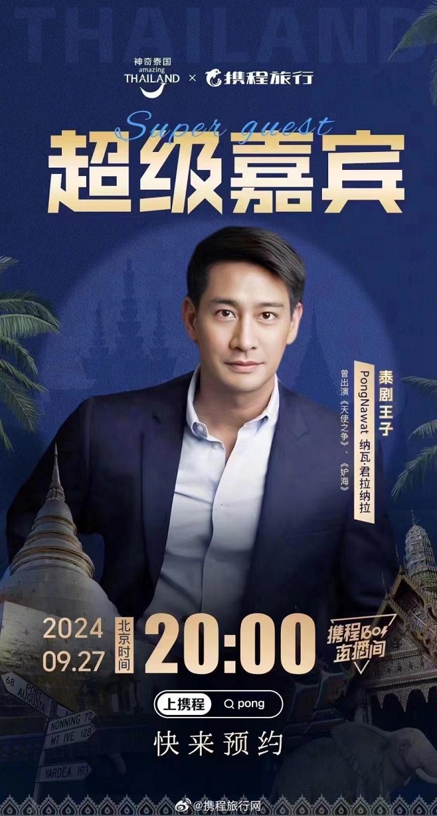 9月27日晚,纳瓦·君拉纳拉将现身携程BOSS直播间,带来清迈“水灯节”相关酒店、会场门票等优惠福利,如酒店最高减300元,直播间下单会场门票95折优惠,预计将带动新一轮赴泰国“节庆游”的热潮。
