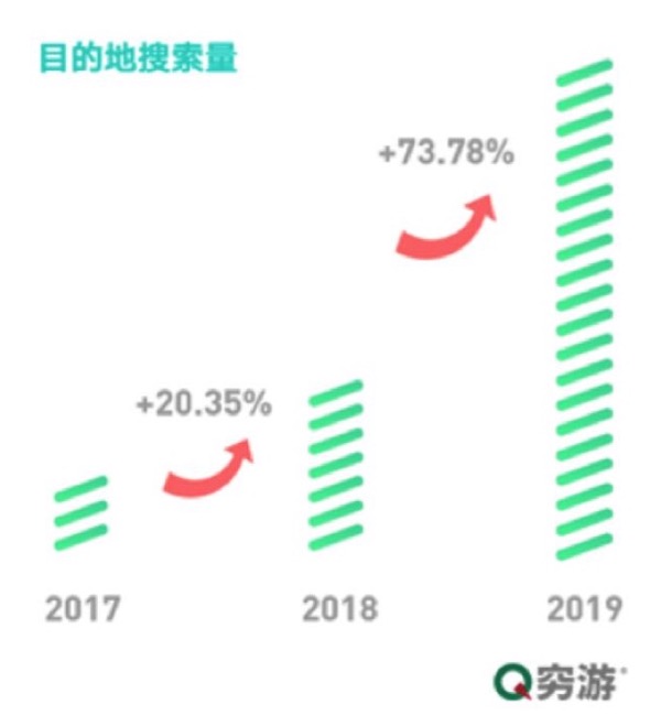 自2009年,国家调整假期结构后,春季法定假期增加为“清明”、“五一”两个小长假,春游热度便是逐年上涨。据穷游网数据显示,2017年3月至2018年3月,游客对目的地搜索量增长20.35%,2018年3月至2019年3月,目的地搜索量增长了73.78%。近三年,目的地搜索量年均增长47.05%,且增长趋势明显。由此可见,游客春季出游的意愿不断增强。