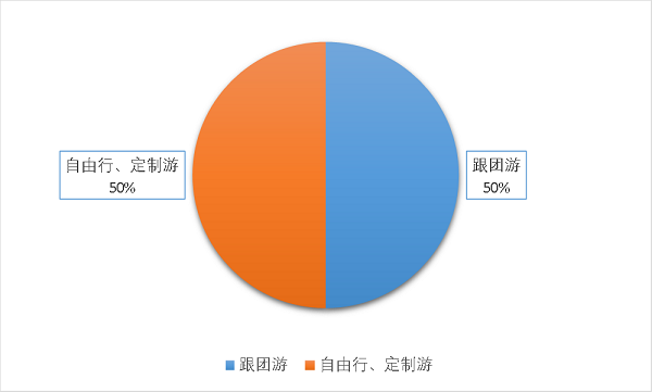 与行程固定化,旅游节奏紧张的普通跟团产品相比,越来越多的游客选择一种自由度较高的跟团方式——半自助旅游。在携程旅游平台,目前自由旅行时间超过一天的跟团类型定义为半自助产品。选择半自助的游客既可以享受旅行社在当地开发的旅游资源优势(例如优惠的酒店价格、团队景区门票价格,当地交通资源等)同时可以根据自己的需求,在自由行的时间里安排体验类、碎片化的活动。