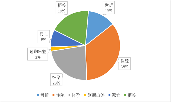 最新统计显示,2018年在携程跟团游等度假产品上,由于特殊原因退订的订单,携程为旅游者承担的金额达1200万元。哪些原因获得退订保障的游客占比最高?住院、怀孕、拒签退订排名前三 ,由于出行人或亲属遭遇住院情况而退订的占比最高,达到了35%。